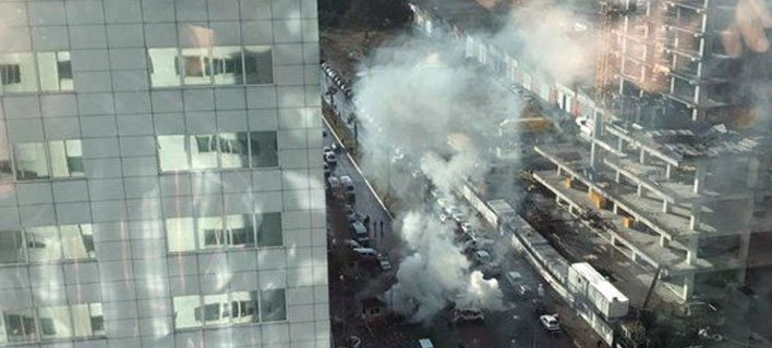 Οι εικόνες που μεταδίδονται από την τηλεόραση δείχνουν ένα σύννεφο καπνού, ενώ ασθενοφόρα και αστυνομικά οχήματα εστάλησαν επιτόπου.